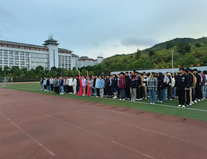 (通讯员 向文贵)2024年9月30日7点,888电子集团网站党委副书记弋兵、学工办全体辅导员、全体党员、各团学干部和2024级新生在北区田径场参加升旗仪式。