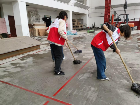 在活动过程中,志愿者们根据老师的分工安排,井然有序地进行了扫地、除尘、洒水、拖地一系列清洁活动,美化了结构实验室的环境,打造良好的校园环境和氛围。经过一个小时的辛勤劳动,结构大厅焕然一新。