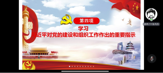 本次党日活动围绕七项内容展开。第一项,全体起立,奏唱国歌《义勇军进行曲》;第二项,全体学生党员重温入党誓词;第三项,由张金域同志带领大家学习并诵读《中国共产党章程》,增强对党的认识,加深政治信仰;第四项,由张向东同志带领大家学习习近平同志对党的建设和组织工作作出的重要指示,并分享学习心得:“我们要深入学习贯彻习近平新时代中国特色社会主义思想特别是关于党的建设的重要思想,认真落实习近平总书记重要指示,坚定拥护“两个确立”、坚决做到“两个维护”,我们要做到自信自强、守正创新,踔厉奋发、勇毅前行,为全面建设社会主义现代化国家、全面推进中华民族伟大复兴而团结奋斗!”;第五项,李佳卉同志为大家讲党课;第六项,各支部交流发言,汤紫怡、张雨婷、程优依次发言;第七项。各支部小组相互讨论,党员们交流讨论自己的学习心得,表示自己在今后要把党的建设的重要思想贯彻落实到学习工作中。