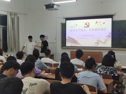 下午六点半,优秀学生党员代表走进22级新生教室,宣讲人以“传承先烈遗志,共筑强国盛世”为题,给学弟学妹们进行了一次党史知识分宣讲。本次宣讲共分为三个部分:建党百年——一路走来艰辛坎坷、改革创新——这盛世,如你所愿、冲寒已觉东风暖,慎终如始勇向前。党员带领同学们回望曾经的屈辱,投注当下祖国复兴,最后展望未来,号召同学们积极加入到共产主义的事业中来。同学们听后大受鼓舞,明白了自己作为新时代青年肩上的重任,也更加坚定要为祖国发展贡献自己的一份力量。