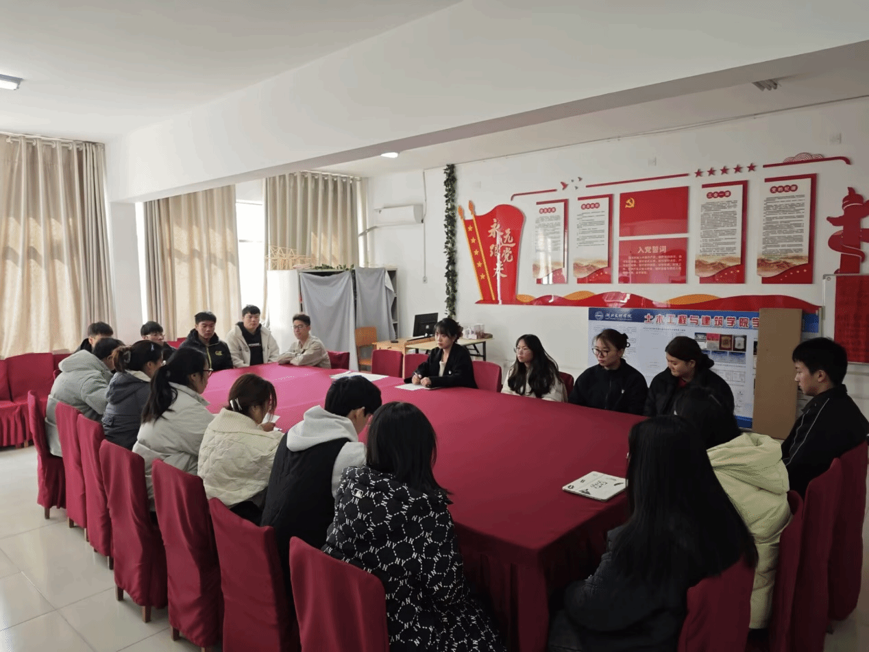 此次会议由辅导员刘雨荷老师及土木工程系学生党支部的学生党员共同参加。会议过程中,孙凤青同志发言,首先表达了她对党组织的诚挚感谢,表明了自己入党的决心,接着回顾自身思想成长历程,多为思政课、党的光辉事迹等启蒙,进而主动深入学习党的知识,由入党积极分子到发展对象,大会最终确定了孙凤青同志为预备党员。